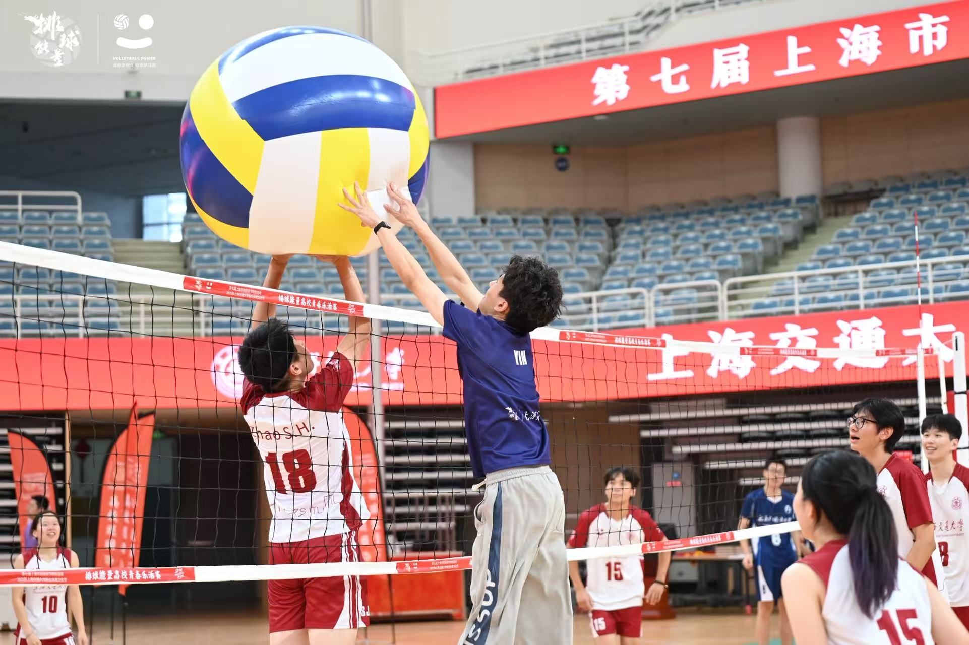 2025年10月8日,2025 年上海交通大学新生体育文化节排球嘉年华暨第七届上海市民排球节“排球能量”高校青春乐活赛总决赛在上海交通大学霍英东体育中心隆重举行。上海现代服务业联合会第四届会长郑惠强、上海交通大学党委副书记赵昕、上海现代服务业联合会副会长曹杰、上海现代服务业联合会副秘书长兼联络部长刘宇、上海交通大学体育系党委书记龚强、体育系主任王坤、体育系党委副书记张仁伟等领导和嘉宾出席活动。本次赛事汇聚了沪上八所高校,如华东师范大学、上海理工大学等男女混合排球队,通过趣味游戏与激烈比赛,展现了高校青年的青春活力和对排球的热爱。