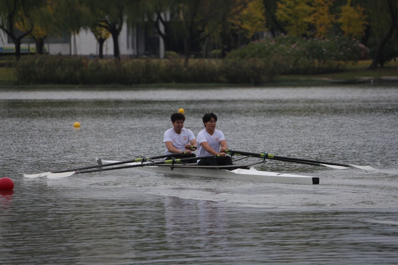我校高水平赛艇队在杨光老师的带领下,参加男子双双、男女混双两个组别的比赛。王祥煜、王家辉两位同学以预赛第一名进入决赛,最终以59秒74的成绩获得该组冠军。