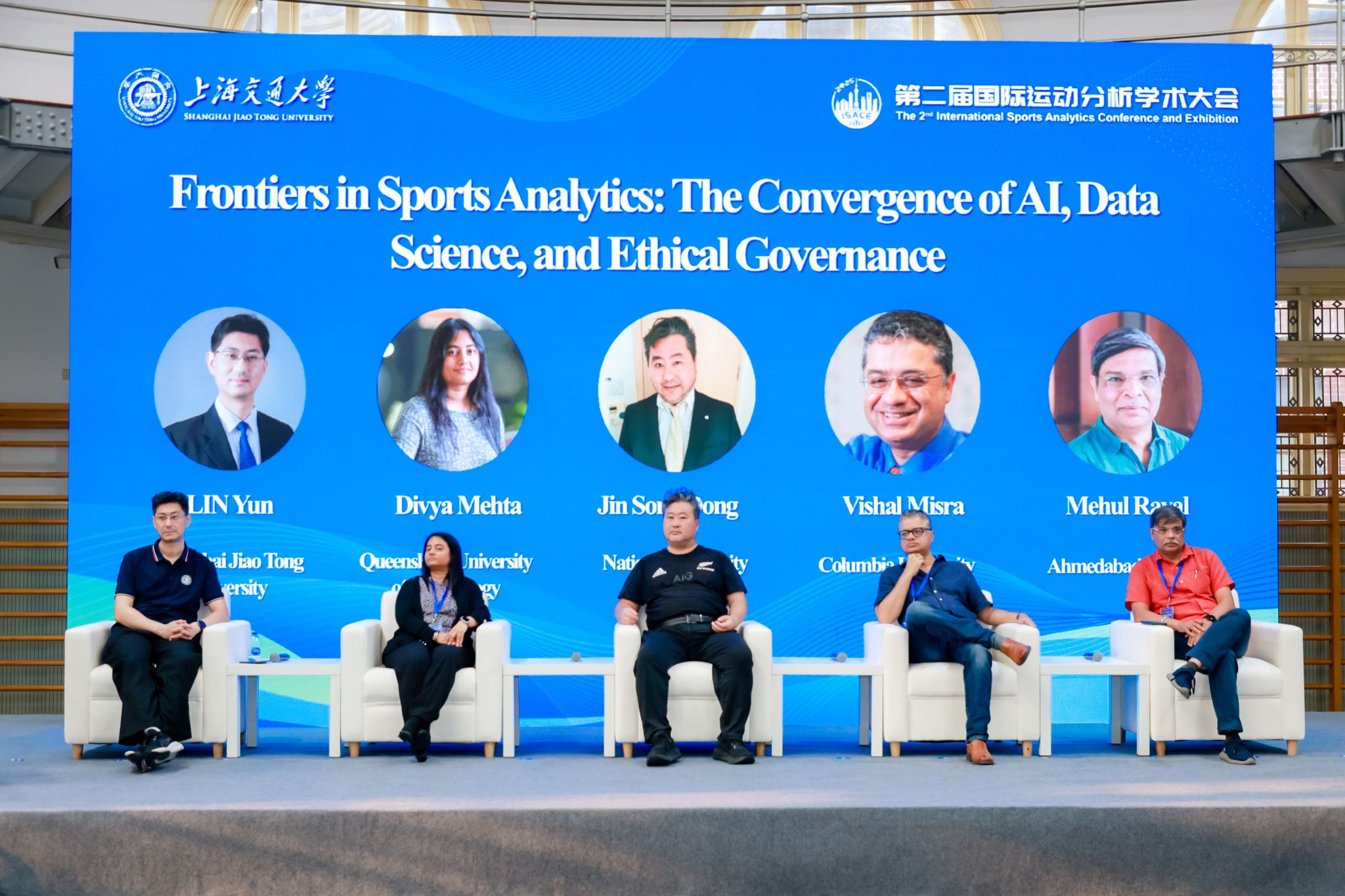 四位专家学者作主旨报告,分享运动分析领域前沿研究成果:上海交通大学高岳教授以“Legged Robots for Winter Sports”为题,系统阐述了足式机器人在冬季运动场景中的技术应用。上海体育大学刘宇教授围绕“Neuro-biomechanical Enhancement Technology”展开报告,深入解析神经生物力学增强技术在的原理与实践价值;昆士兰科技大学Divya Mehta教授聚焦“Longitudinal Biopsychosocial Markers of Health and Performance in Australian Elite Athletes”,通过长期追踪澳大利亚精英运动员数据,提出了多维度健康与运动表现评估模型;哥伦比亚大学Vishal Misra教授以 “From CricInfo to Cricket Lens: Engineering the Future of Sports Analytics” 为题,回顾了体育数据分析从基础统计到智能可视化的发展历程,并展望运动大数据分析技术的发展。
