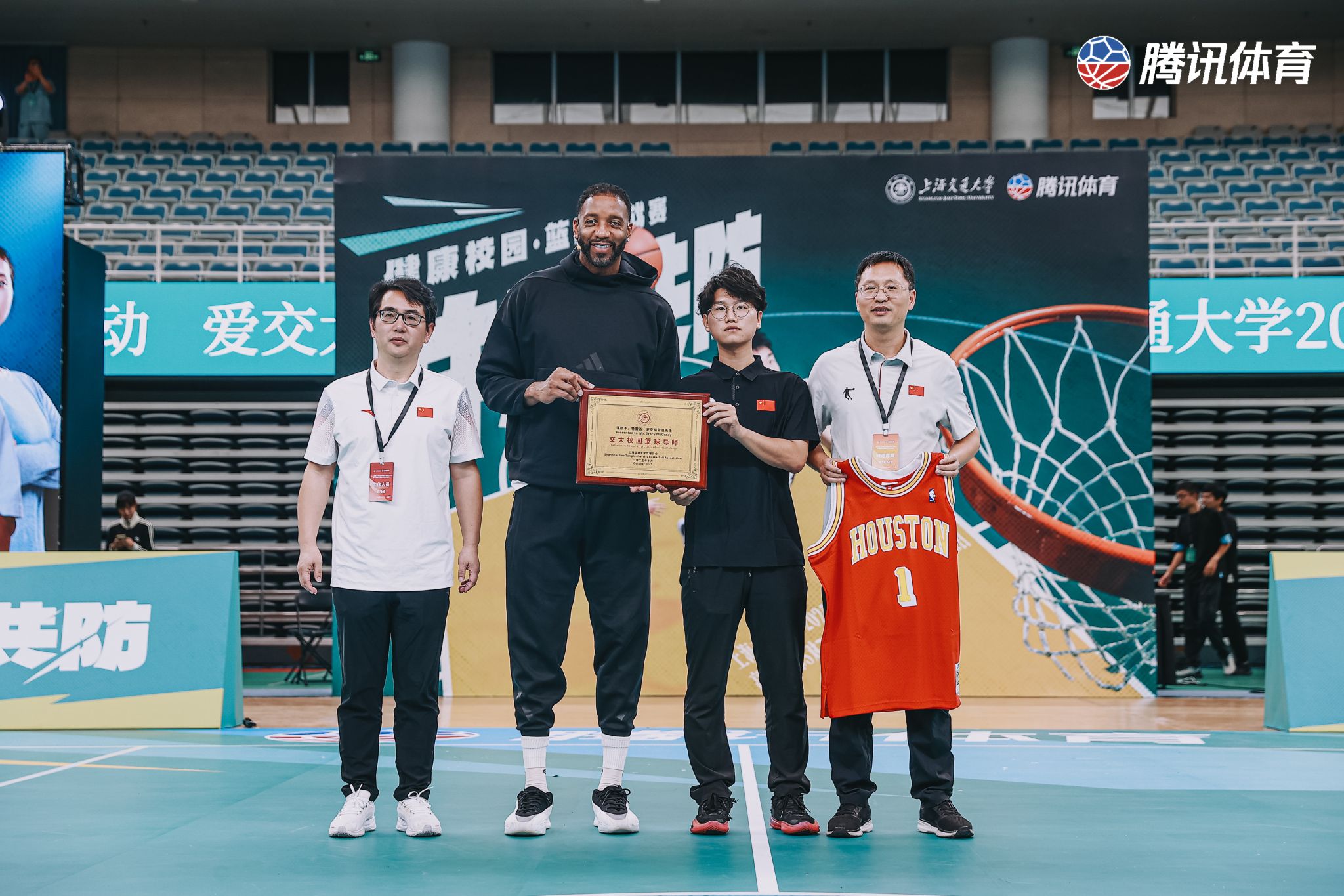 活动期间,上海交通大学体育系党委书记龚强、体育系主任王坤和交大篮球协会主席肖彬瑞同学共同为麦迪颁发“交大校园篮球导师”荣誉牌匾,感谢麦迪为推动篮球运动发展所做出的贡献,希望其自身的体育精神能够带动更多的交大师生参与到校园体育活动中。麦迪回赠签名球衣。
