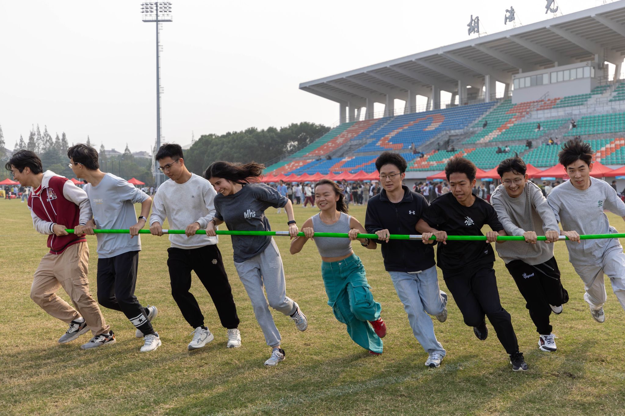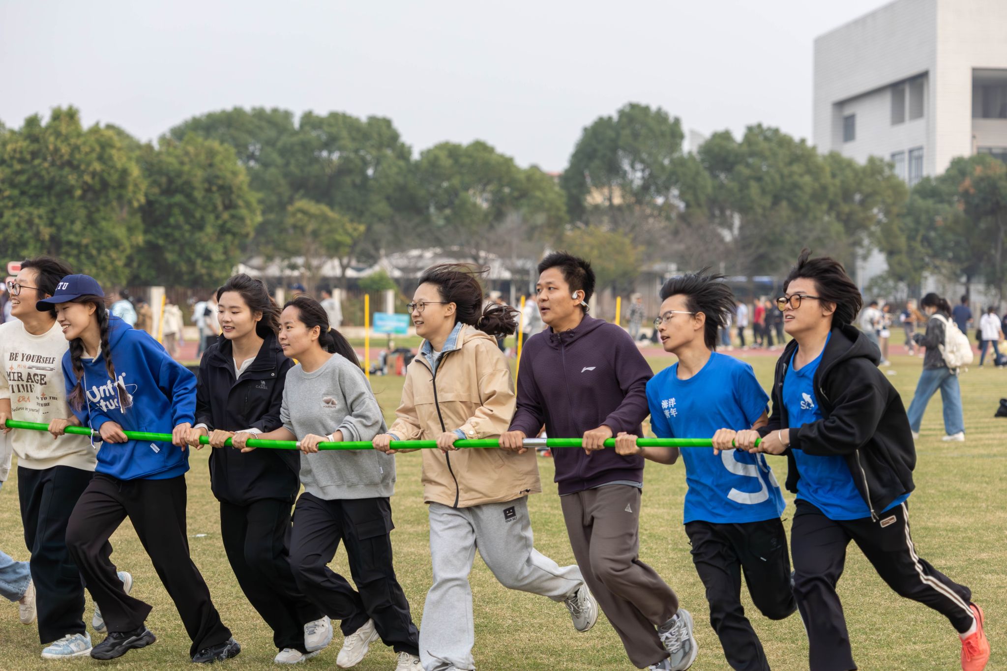 本次新生班级运动会在学指委团委和各院系积极发动和组织下,参赛规模再创新高,共有超过150个班级的2000多名本硕博新生同学参加。他们以班级集体单独或联合组队的形式分别参加拔河、穿梭接力、跳长绳、平板支撑和旋风跑等项目,参赛所获积分将纳入各院系2025年学生运动会团体总分。