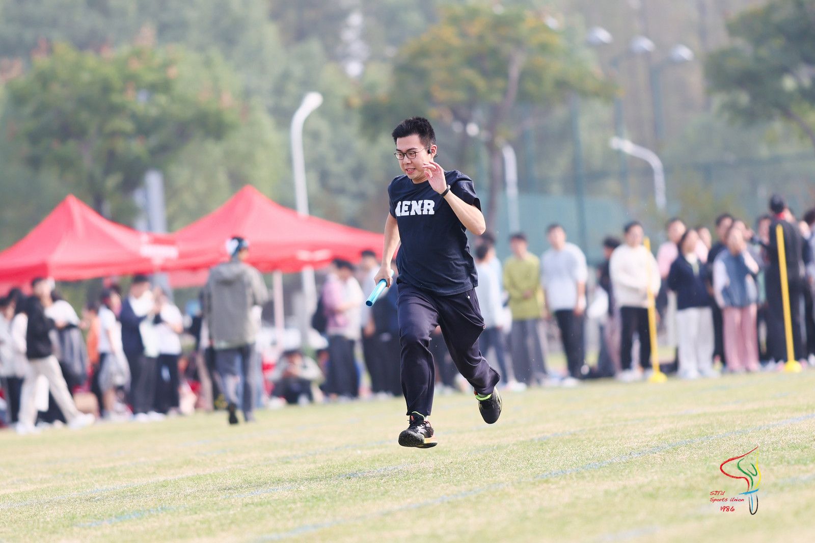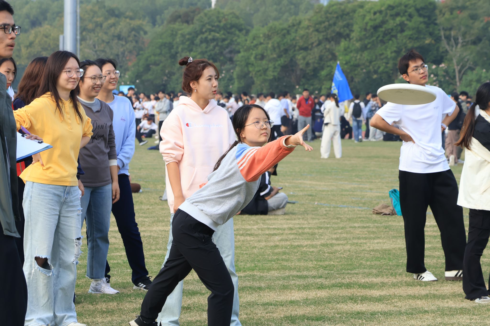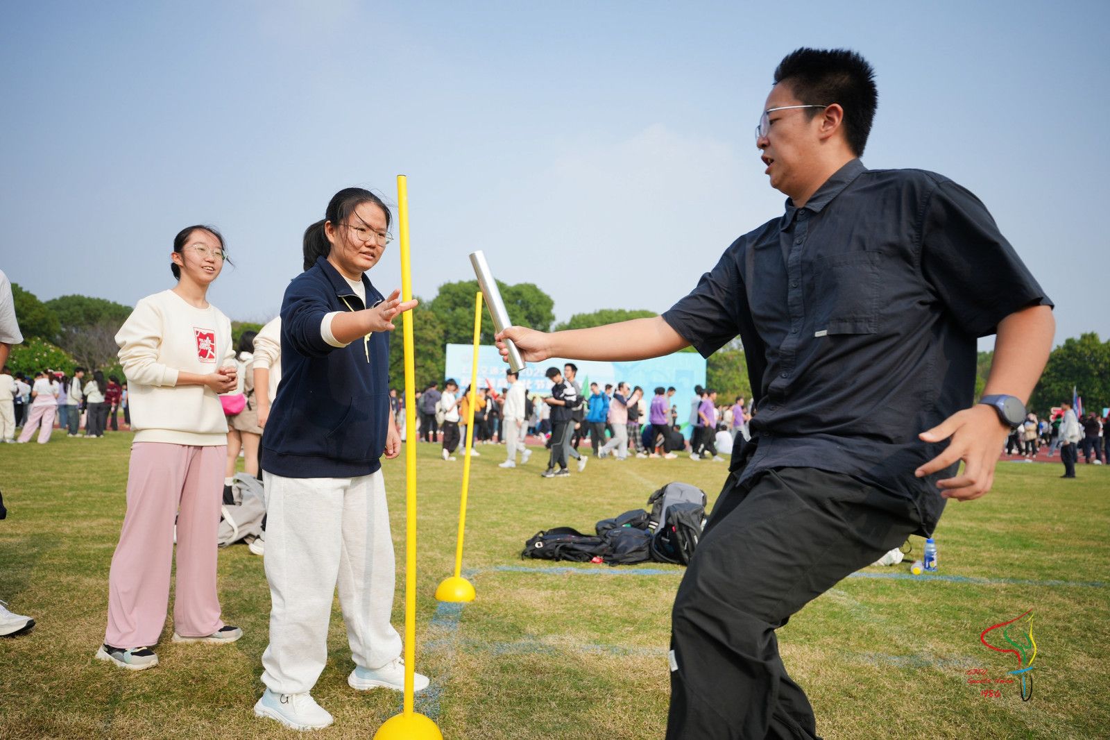 在47支班级队伍参加的20人50米接力跑中,每一次的交接都是竭尽全力。他们传递的不仅仅是小小的接力棒,是青春的活力,也是浓厚的情谊与信任。