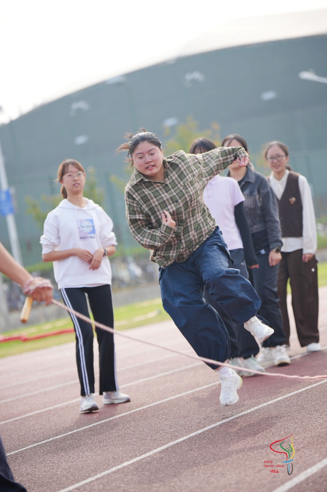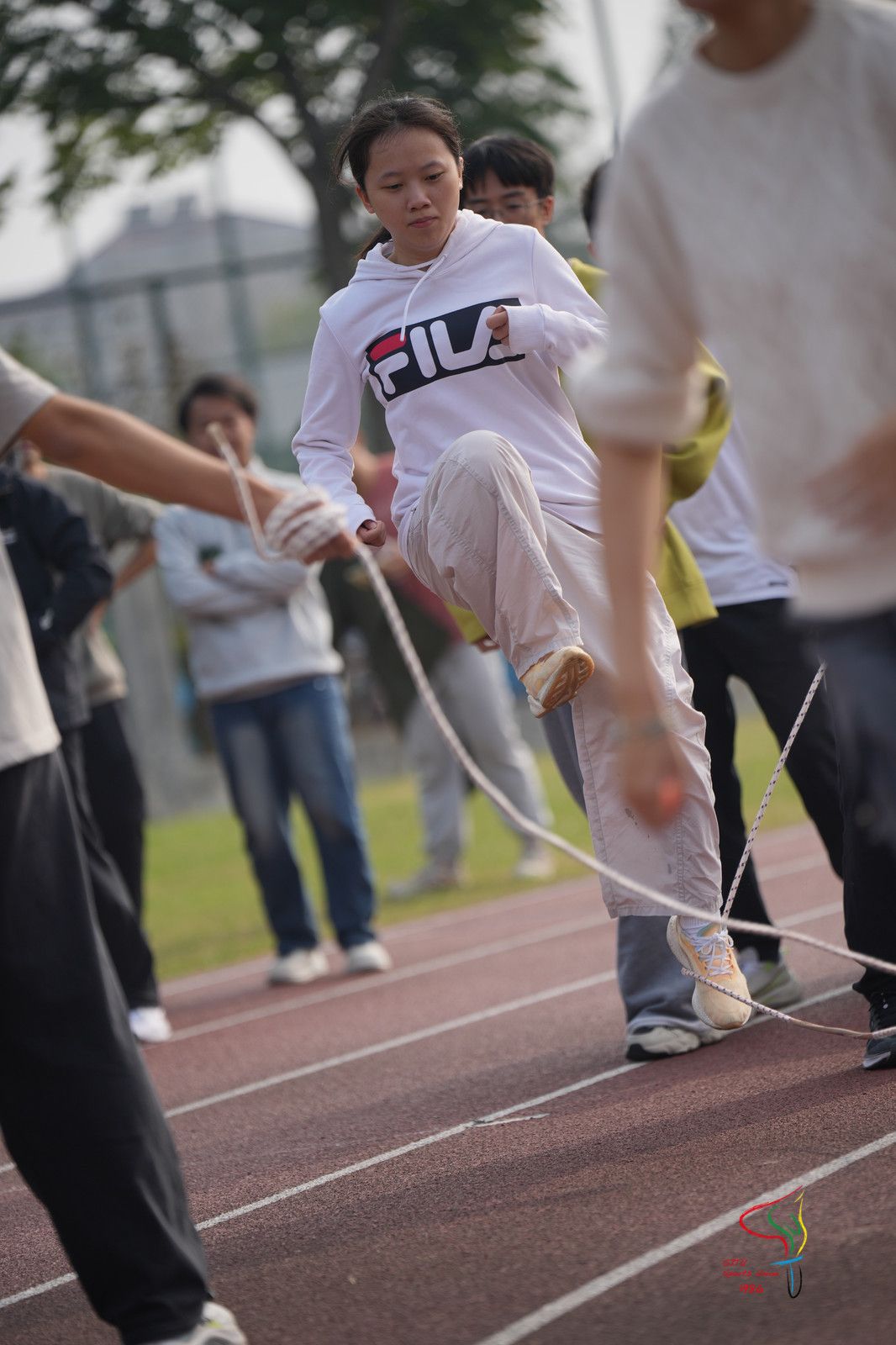 一根长绳,就将来自五湖四海的新交大人联结在了一起。长绳在空中划过一道道优美的弧线,48支20人参赛班级队伍的同学们矫健的身影穿梭其间。伴随长绳与地面的摩擦声与口中计数的声音,同学们愈发凝神聚气,全身心投入其中。