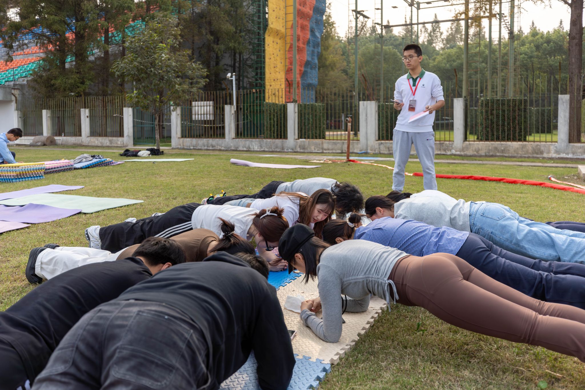 31个10人班级队伍报名参赛,选手们需要在规定的时间内保持平板支撑的姿势,比拼谁的耐力更强、坚持时间更长。随着比赛的进行,现场的气氛愈发紧张,汗水在参赛者的额头上滑落,但他们仍然咬牙坚持,展现了不屈不挠的精神风貌。