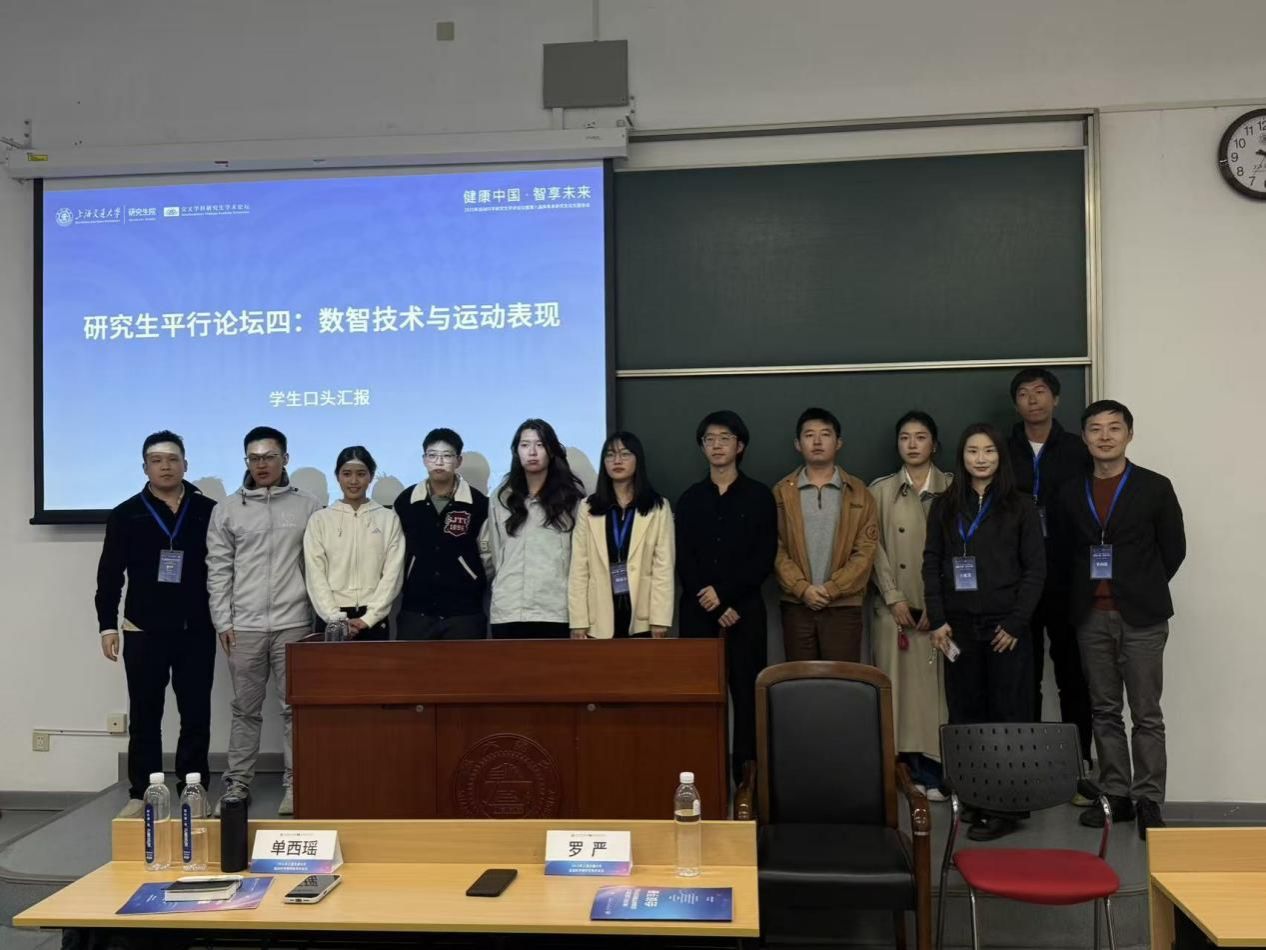 随后,四个研究生平行论坛分别围绕“人工智能与运动健康”“运动与身心健康促进”“体育治理与全民健身”“数智技术与运动表现”主题开展。体育系教师柳文希、杨彦祥、赵影、夏杰、季泰、王学彬、单西瑶、罗严等参与主持及点评。研究生平行论汇聚了来自上海交通大学、华东师范大学、上海体育大学、英国拉夫堡大学、广州体育学院、沈阳体育学院等高校的近40位研究生代表参与口头汇报,内容聚焦运动科学前沿,为智慧体育与全民健康融合发展的学术交流搭建了平台,为运动促进身心健康等相关领域研究注入了新的思路与活力。