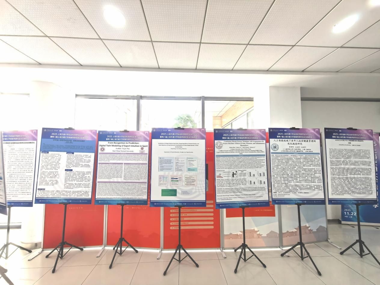活动期间,20余篇研究生论文入选2025年上海交通大学运动科学研究生学术论坛海报展示交流环节。相关海报展板在陈瑞球楼1楼走廊展出,吸引了数十位交叉学科师生参与交流。
